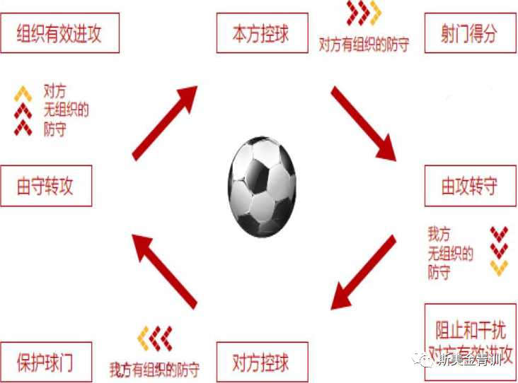 (3) 对方控球时(防守):扰乱对手的进攻组织;尽快重新夺回球权; 保护球门不失球;
